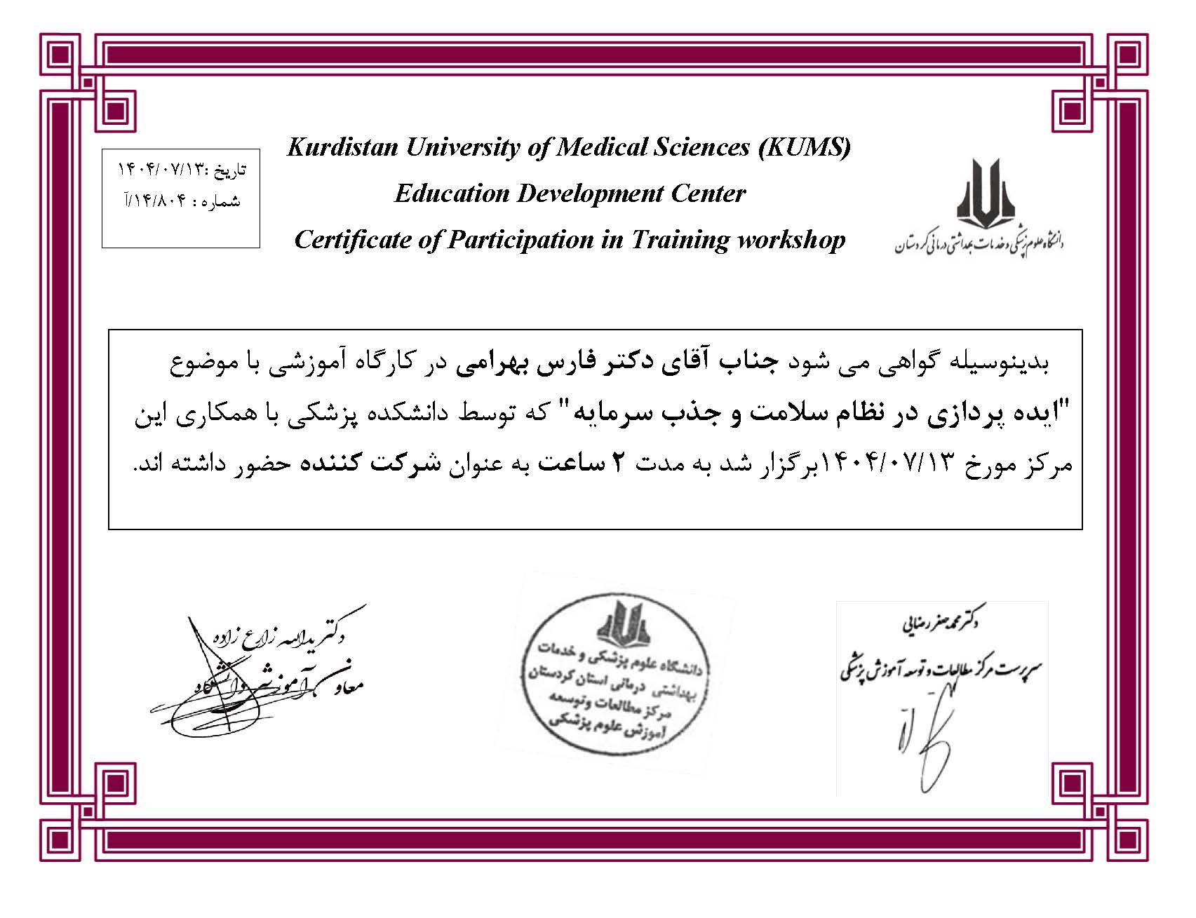 جناب آقای دکتر فارس بهرامی
