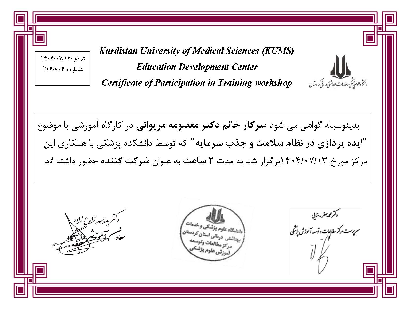 سرکار خانم دکتر معصومه مریوانی
