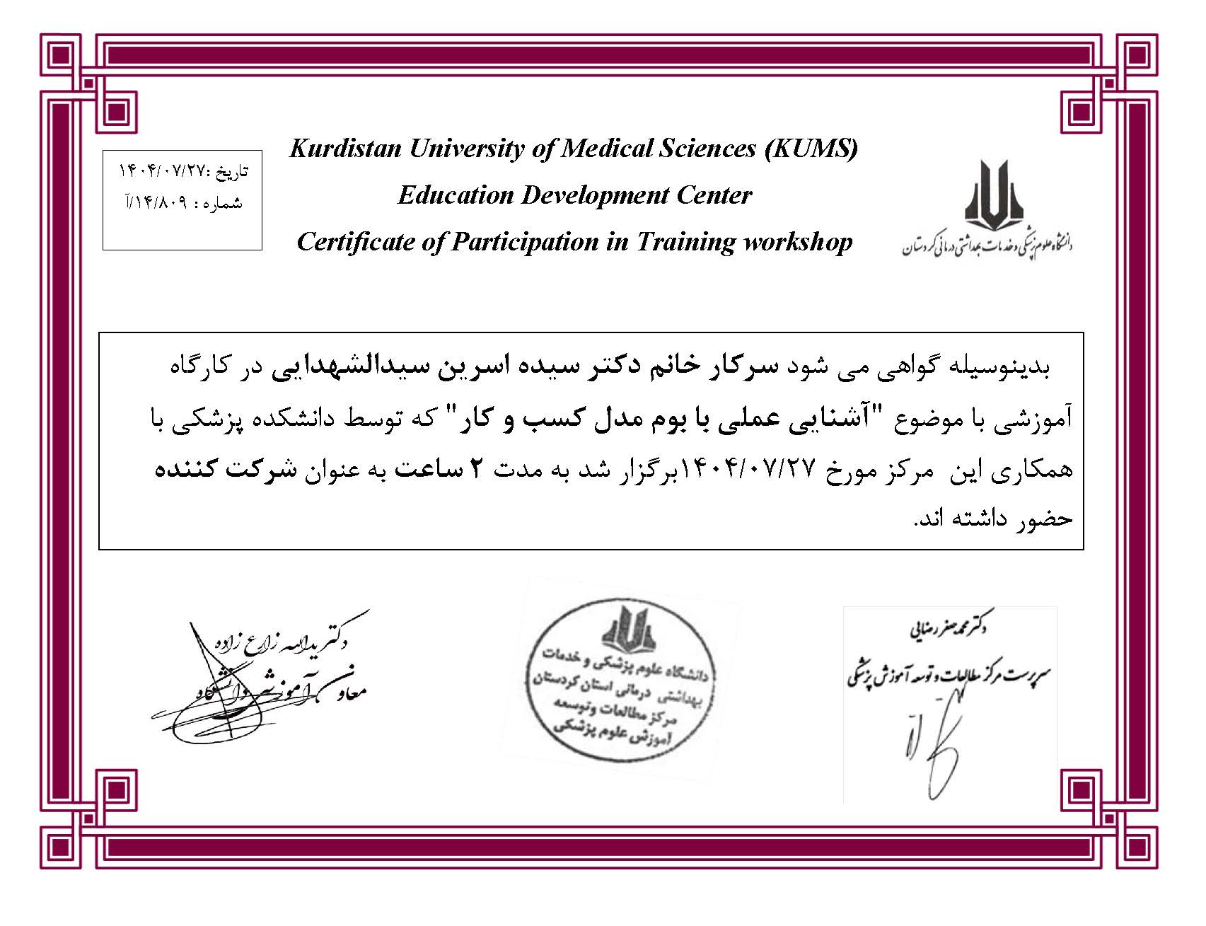 سرکار خانم دکتر سیده اسرین سیدالشهدایی